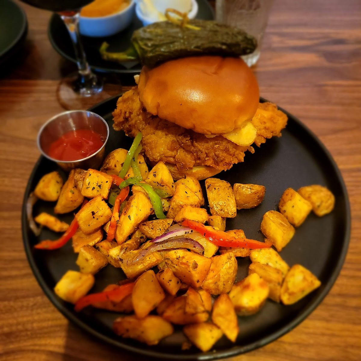 Excellent service, beautiful ambiance, and the food was fantastic. Came in for a girls pow wow and loved every second of my experience. One of my girls lives in Anaheim and she picked this spot. We had wings, calamari, and the spinach artichoke dip as our appetizers. The fried chicken sandwich was soo good. My server had me order it differently and I wish I remembered haha. But love getting recommendations from staff! That was a great sandwich and I will be back because of it. Drinks, comfy seats, yummy appetizers, girl time, supportive staff was very much appreciated. We're all former servers from the cheese and still catch up every few months. Love that we get to try new eateries and cool meetups. Even luckier to have found Julep.